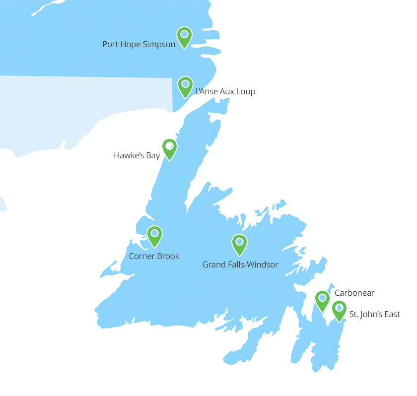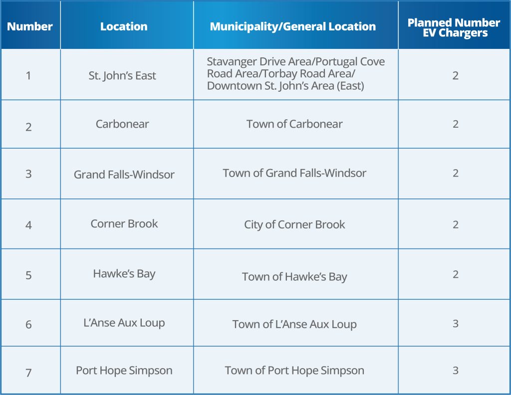 On the island of Newfoundland, we’re seeking five locations to install two Ultra-Fast chargers at each site.